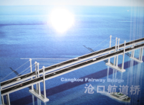 ????西岸灘涂區(qū)采用跨徑50m移動模架施工的連續(xù)梁,基礎均采用水下鉆孔灌注樁。大橋從1993年4月開始規(guī)劃研究,經(jīng)歷了規(guī)劃、預可、工可、初設、施工圖設計和招投標等階段,開工歷時13年零8個月,包括兩院院士、長江學者在內(nèi)的數(shù)百名中外專家、學者為大橋付出了智慧和汗水。