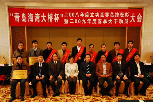 ????今天下午,由山東總工會、青島勞動競賽委員會、山東高速青島海灣大橋建設指揮部聯(lián)合組織召開了2008年度“青島海灣大橋杯”立功競賽表彰大會暨2009年度春季大干動員大會,對在海灣大橋施工中表現(xiàn)突出的單位和個人給予了表彰。