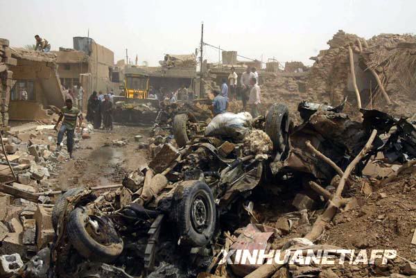 ????6月20日,伊拉克民眾在北部城市基爾庫(kù)克附近發(fā)生的汽車炸彈爆炸現(xiàn)場(chǎng)圍觀。伊拉克警方人士當(dāng)日說(shuō),基爾庫(kù)克的一座清真寺附近當(dāng)日發(fā)生汽車炸彈爆炸襲擊,造成至少35人死亡、160人受傷。新華社/法新