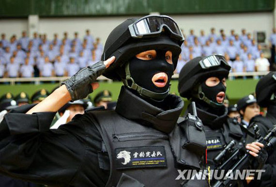 6月23日,雪豹突擊隊(duì)隊(duì)員在安全保衛(wèi)動(dòng)員誓師大會(huì)上宣誓