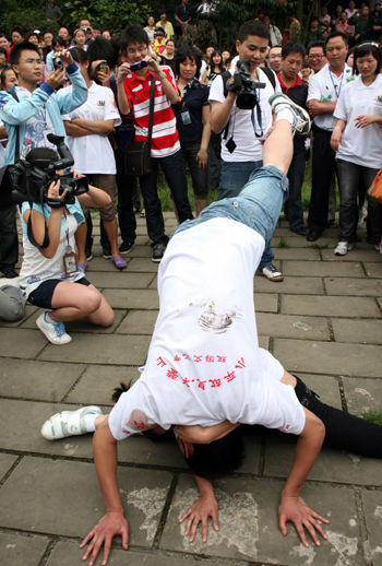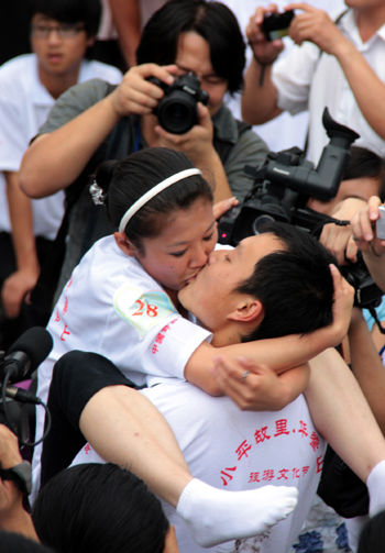???? 2009年7月4日下午,來自貴州、湖北、重慶、成都等預(yù)賽區(qū)的情侶,在“天下情山”四川華鎣山參加決賽,角逐“天下第一吻”。