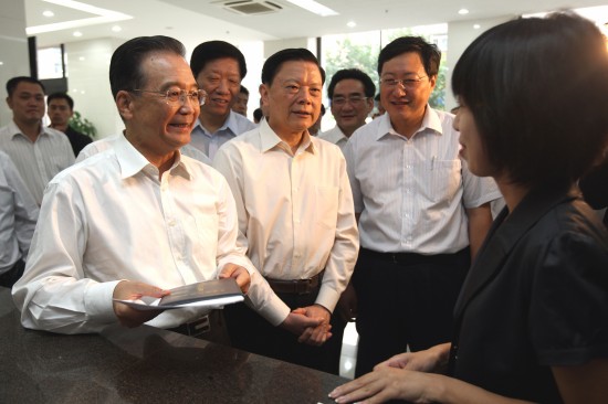 溫家寶在大連市高校畢業(yè)生就業(yè)服務(wù)中心的一樓服務(wù)大廳里與前來求職的大學(xué)畢業(yè)生親切交談。新華社記者 姚大偉攝