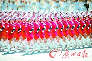 ????1999年建國50周年的閱兵儀式,第二次有女兵和女民兵方隊(duì)加入其中。昨天,是女兵和女民兵方隊(duì)第三次參加閱兵儀式。而且,女兵方隊(duì)首次由海陸空三軍的378名女兵組成,是本次閱兵當(dāng)中人數(shù)最多的方隊(duì),也是世界近代閱兵史上規(guī)模最大的徒步方隊(duì)。