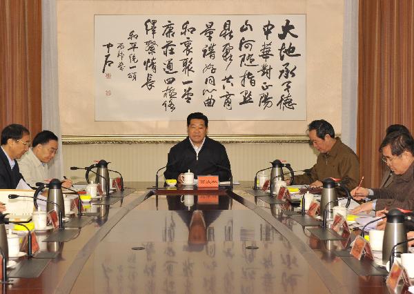 4月19日,中共中央政治局常委、全國政協(xié)主席賈慶林主持召開中央有關(guān)部門負責人會議,傳達貫徹17日中央政治局常委會議精神,對充分發(fā)揮各方面作用,做好青海玉樹抗震救災(zāi)和團結(jié)穩(wěn)定工作作出部署。新華社記者黃敬文攝