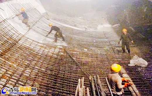 鋪設隧道內行車道需要工人師傅們用一根根鋼筋架起