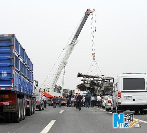 這是搶救人員在交通事故現(xiàn)場(chǎng)進(jìn)行事故處置。新華社記者 李鋼攝