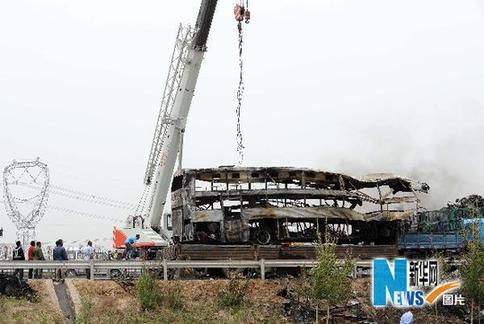 這是搶救人員在交通事故現(xiàn)場進(jìn)行事故處置。 新華社記者 李鋼攝