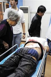 ????在經(jīng)過背部縫合手術(shù)之后,劉先生昨天已經(jīng)脫離危險。(記者 黃飛 于滈 王壽林 攝影報道)