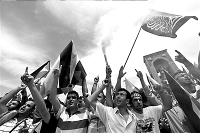 5月31日,在土耳其伊斯坦布爾,民眾抗議以色列軍艦向國際加沙救援船隊開火。 新華社/法新