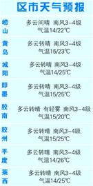 ????據(jù)青島市氣象臺首席氣象預報員介紹,由于海洋水溫只有14-15℃,南風一刮,半島氣溫就很難升高,所以最高氣溫較魯中以西來的低一些。目前,在渤海灣的西側(cè)有對流云團,這是一個高空低渦造成的。受其影響島城市區(qū)的氣溫一直保持在15-20℃,未來三天也沒有什么太大變化。少了海洋氣候的調(diào)節(jié),郊區(qū)的氣溫開始快速升高,最高氣溫從26℃將一直上升到30℃左右,郊區(qū)的氣溫明顯高于市區(qū),且多是大晴天,市民可以放心安排自己的行程。