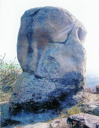 河南方城發(fā)現(xiàn)大型生殖崇拜祭祀場 規(guī)模世界罕見 ????本報漯河訊 “這次在方城縣發(fā)現(xiàn)的大型生殖崇拜祭祀場,其完整性和規(guī)模在世界上都是罕見的!”昨日,記者見到漯河市考古學者馬寶光時,他仍沉浸在激動中。 ????繼在南陽市方城縣和駐馬店市泌陽縣等地發(fā)現(xiàn)具茨山類型天書、走上北京大學講壇作考古與藝術(shù)學術(shù)報告引起轟動后,近日,59歲的漯河市民間考古學者馬寶光,又在南陽市方城縣古莊店鄉(xiāng)劉崗南老鴰石山頂,發(fā)現(xiàn)了一個形象高大的男根祖石(如上圖)。 ????“這是一個距今4000多年前的遺跡,以祖石為中心,在其四周及5里之內(nèi),發(fā)現(xiàn)了許多不同數(shù)目、不同排列形式的凹穴,以及凹線貫穿凹穴的不同大小和形式的遠古示意圖?!瘪R寶光告訴記者,“顯然這里是一處保存完整、規(guī)模宏大的巨型生殖祭拜大典的中心?!?/p> |