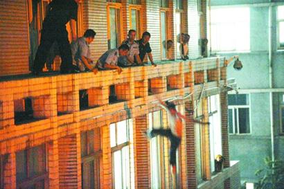 兩歲兒子,“爸爸我想你了” 昨晚,接到報(bào)案后,110民警迅速趕到現(xiàn)場,一起加入了營救隊(duì)伍。在嘗試了各種常規(guī)救援都無效后,民警當(dāng)即決定,開車將張強(qiáng)的妻子和兒子接到醫(yī)院,準(zhǔn)備打出 “親情牌”。 昨晚22時(shí)30分,張強(qiáng)妻子在父親老張的陪伴下,帶著年僅兩歲的兒子樂樂趕到現(xiàn)場。望著三樓上搖搖欲墜的老公,她頓時(shí)淚如泉涌,將頭埋在兒子的頭發(fā)間哭泣。在民警的幫助下, 剛要進(jìn)屋,猛然轉(zhuǎn)身離去 “爸爸,我想你了,你快回來吧,不要跳樓。 ”晚上23時(shí)15分,雖然已是深夜,但是兩歲的樂樂似乎也明白眼前的事情非常重要,一點(diǎn)困意也沒有。他再次在媽媽懷中,喊出了這句話,并向不遠(yuǎn)處的爸爸伸出了小手……父子情深,血濃于水,張強(qiáng)聽到兒子的央求后,慢慢地回到了窗戶前,透過被砸碎的窗戶看著屋里的兒子和妻子,準(zhǔn)備跨入病房。但正當(dāng)所有人以為事情就此結(jié)束時(shí),張強(qiáng)又突然轉(zhuǎn)身,沿著陽臺跑到了別處,剩下了哇哇大哭的兒子。 看著昔日熟悉而如今判若兩人的老公,張強(qiáng)的妻子抱著孩子緩緩地轉(zhuǎn)身離開了病房,眼角里早已噙滿了淚水。而老張則手足無措,只能縮在墻角默默哭泣,不敢大聲說話。 三樓跳下,跌進(jìn)救生氣墊 轉(zhuǎn)眼間,已經(jīng)過去了近3小時(shí),但救援行動(dòng)仍然沒有什么起色,而遠(yuǎn)處的張強(qiáng)好像也感受到了身體和心理的壓力,開始變得妥協(xié),他不再大聲嚷叫,變得安靜起來。見時(shí)機(jī)成熟,幾名民警也沿著窗戶爬到了陽臺上,對他實(shí)施“左右夾擊”。民警步步為營占領(lǐng)著空余的陽臺,張強(qiáng)則不斷往中間的陽臺收縮,而民警離他也越來越近。在距離張強(qiáng)約一米時(shí),張強(qiáng)突然縱身一躍,跳到樓下。 一聲聲無奈的嘆息聲中,張強(qiáng)結(jié)束了這場長達(dá)3小時(shí)26分的“拉鋸戰(zhàn)”。躺在救生氣墊上,張強(qiáng)望著身邊的兒子和妻子,他趕緊將眼睛閉上,不再說話。隨后,張強(qiáng)被送往急診室進(jìn)行治療。 |