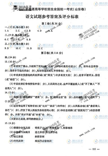 2010年高考數(shù)學(xué)試題答案公布(山東卷)