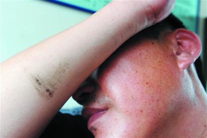 ????于師傅說,當時面包車司機讓他倒車,把道讓出來,而當時還有車跟在后面,他也不敢輕易倒車,怕倒不好再撞上。此時,4名二三十歲的年輕人從面包車里下來張口就罵,其中一個戴眼鏡的青年從司機座旁邊的窗口伸進手來打了他一拳,雙方爭執(zhí)起來。沒想到另外兩名青年竟然從車窗爬進來,站在車子前方的發(fā)動機上,沒等他反應過來就是一頓猛踹,他只能拼命用手護住頭部。