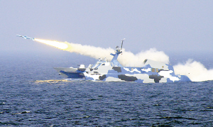 海軍東海艦隊(duì)舉行海空實(shí)兵實(shí)彈演練,新型導(dǎo)彈艇在演練中對(duì)海上目標(biāo)發(fā)射反艦導(dǎo)彈。新華社 發(fā)