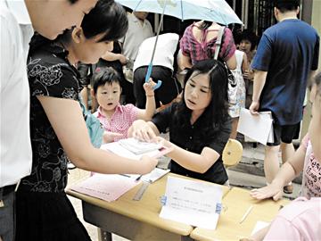 ????根據(jù)相關(guān)規(guī)定,新生報(bào)名時(shí)家長須同時(shí)持公安部門核發(fā)的兒童隨父母或祖父母(外祖父母)同戶、同住的戶籍卡(本)、與戶籍情況一致的住房產(chǎn)權(quán)人的房產(chǎn)證(房卡)報(bào)名、健康體檢證明及預(yù)防接種手冊(cè)。但記者在現(xiàn)場(chǎng)看到,不少“馬大哈”的家長因?yàn)樽C件不全,而不得不在家和學(xué)校之間來回奔波?!斑@已經(jīng)是第三趟了,忘帶預(yù)防接種手冊(cè)了?!币晃患议L告訴記者。
