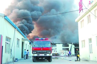 ????“一家廠房起火了,火勢很大?!弊蛱煜挛?時(shí)許,膠州市民王先生告訴記者,他剛才和朋友正在泉州路上的一家飯店吃飯,突然聽到飯店外有人高喊起火了。他和朋友一起從酒店出來,果然在酒店的正后方,一家企業(yè)的廠房冒起滾滾濃煙,多輛消防車呼嘯著向起火廠房趕去。記者接到線索后,立即趕往現(xiàn)場,在距離失火廠房2公里遠(yuǎn)的地方時(shí),就看到冒起30多米高的濃煙。