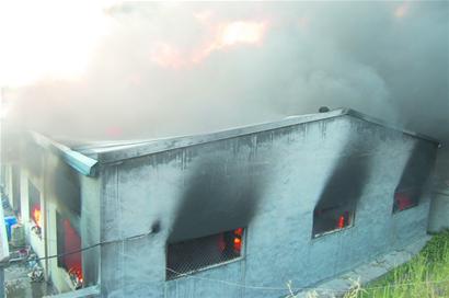 ????記者趕到現(xiàn)場,在大門口就能聞到一股塑料燒焦的味道,從廠門口往里望,可以看到一排起火的彩鋼瓦廠房,靠近大門西排的彩鋼瓦房屋頂被燒穿。消防隊(duì)員對失火廠房噴水滅火,并阻止火勢的進(jìn)一步蔓延。一名在該廠打工的中年男子告訴記者,起火的是這家塑料廠的生產(chǎn)車間?!捌鸹鸬臅r(shí)候,車間里沒人,也沒人受傷?!边@名工人說。記者在采訪過程中,大火借著風(fēng)勢越燒越厲害,很快將近千米的廠房全部引燃。晚7時(shí)許,在5輛消防車的撲救下,廠房的大火才被控制住。目前失火原因和損失情況正在進(jìn)一步調(diào)查中。 (牟成梓 孫強(qiáng) 攝影報(bào)道)