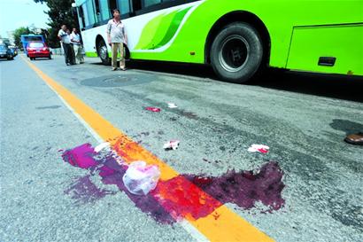 ????“在太平路人民會堂附近有名女青年被公交車撞傷了,現(xiàn)在她滿頭滿臉都是血……”乘坐公交車經(jīng)過現(xiàn)場的于先生撥打早報熱線82888000報料,記者聞訊趕到現(xiàn)場時看到,一輛公交車停在太平路邊上,車頭前的行車道中間坐著一名20多歲的女青年,她頭部面部有兩道傷口,鮮血順著傷口汩汩流出,周圍的好心人正找出紙巾等物為她止血,120急救人員隨即趕到現(xiàn)場,為女青年簡單包扎后,將她緊急送往附近的青醫(yī)附院急診室。記者看到女青年旁邊的行車道上滿是鮮血,公交車前擋風(fēng)玻璃左側(cè)有一道明顯被撞裂的痕跡。