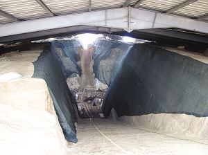 ????山頂很開闊,一道圍墻把在門前,門旁是一面巨大的考古分析圖表,上面是幾幅空中鳥瞰照片??脊湃藛T說,“這是專為此次考古動(dòng)用飛艇拍攝的?!睋?jù)介紹,墓園面積達(dá)25萬平方米,面積之大,等級之高,在南博考古史上也少見。最近的一座大棚的進(jìn)口只有一人多高,大棚里是一個(gè)很深的坑道,坡度至少有40度。負(fù)責(zé)此次考古的南博考古所副所長、領(lǐng)隊(duì)李則斌隊(duì)長讓大家抓住一旁的繩索,一步步地向下滑去。這時(shí)候,一位考古隊(duì)員用手指著對面墓道身處的一個(gè)橫著的巨大條石說,“遙感圖片上的黑頂位置就在這,去年初發(fā)生的盜墓案,4名盜墓者就是死在這里?!?/p>