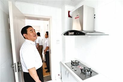 ????早報(bào)訊 昨日,四方區(qū)組織各街道社區(qū)代表參觀康居公寓小區(qū),廉租房已經(jīng)完成的兩個(gè)樣板間首次公開亮相。康居公寓是我市目前最大的廉租房片區(qū),建有1972套廉租住房,10月底前交付使用。廉租房已經(jīng)開始內(nèi)部精裝修,櫥柜、油煙機(jī)、打火灶、衛(wèi)生潔具等一應(yīng)俱全,廉租戶在臥室添張床就能直接入住。