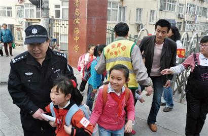????“孩子們慢點走,過馬路時注意看車?!苯衲?月一天的下午3時30分,廣饒路小學門口3名民警正在學校門口執(zhí)勤,剛放學的小學生在老師的護送下走到校門口,由于廣饒路比較狹窄,過往車輛又非常密集,執(zhí)勤民警隨即上前將過往車輛攔下,護送學生過馬路。今年5月初開始,在110民警護校的基礎上,各派出所民警也參與到護校工作中,全市實行“一校一警”制度,確保每一所學校、幼兒園在上、放學時,都有民警來做“保鏢”。