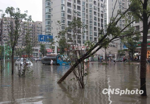 ????7月18日下午,安徽合肥氣象臺發(fā)布雷雨大風(fēng)黃色預(yù)警信號。合肥降大暴雨,風(fēng)力達(dá)7-8級,導(dǎo)致市區(qū)多處內(nèi)澇,市內(nèi)交通嚴(yán)重堵塞。 中新社發(fā) 張婭子 攝