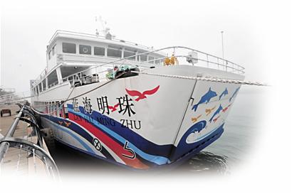 ????即使經(jīng)常乘坐輪渡的乘客,現(xiàn)在走上由輪渡變成的游輪 “藍(lán)海明珠”,也幾乎看不到曾經(jīng)的渡輪影子,雖然整個船體并沒有改變,但船艙內(nèi)部卻徹底變換了樣式。原來簡單的上下兩層船艙,即上層乘人,下層放車的格局,現(xiàn)在變成餐廳、舞廳、吧臺、會議室等休閑娛樂設(shè)施搭配組合的豪華游船。
