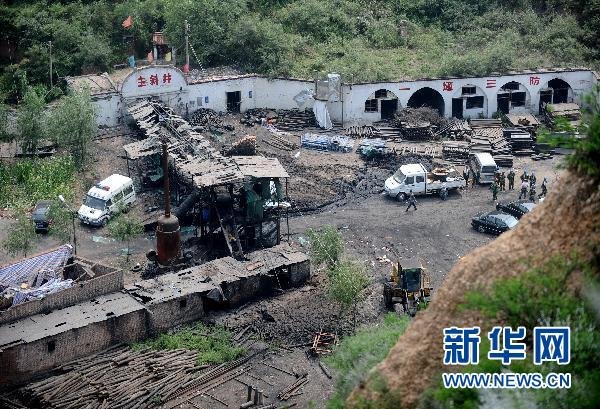 7月31日拍攝的劉溝煤業(yè)公司爆炸事故現(xiàn)場。 新華社記者 燕雁 攝