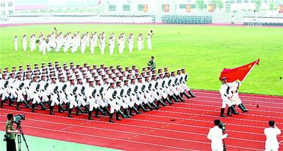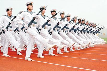 ????隨后,在青島某軍港舉行了盛大閱兵儀式。 10時(shí)30分,閱兵總指揮、北海艦隊(duì)副司令員張世英向田中報(bào)告:受閱部隊(duì)列隊(duì)完畢!田中下達(dá)開(kāi)始檢閱的命令。伴隨著雄壯的《中國(guó)人民解放軍進(jìn)行曲》,田中依次檢閱航空兵、潛艇、水面艦艇、陸勤部隊(duì)等方隊(duì)。10時(shí)40分,閱兵分列式開(kāi)始。由儀仗隊(duì)組成的方隊(duì),護(hù)衛(wèi)著中國(guó)人民解放軍軍旗走在最前面,緊隨護(hù)旗方隊(duì)的,是10個(gè)徒手方隊(duì)和9個(gè)持槍方隊(duì):意氣風(fēng)發(fā)的潛艇兵、壯志凌云的飛行員、英姿颯爽的女兵……一支支精神抖擻、步履鏗鏘的方隊(duì),在震天的口號(hào)聲中,雄赳赳氣昂昂地逐一通過(guò)觀禮臺(tái),展示出艦隊(duì)官兵高昂的戰(zhàn)斗激情和瀟灑的青春風(fēng)貌。