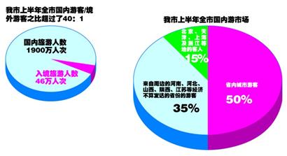 ????來自我市旅游統(tǒng)計(jì)部門的數(shù)據(jù)顯示,今年上半年全市入境旅游人數(shù)超過46萬人次,國內(nèi)旅游人數(shù)近1900萬人次,國內(nèi)游客/境外游客之比超過了40:1。而在國內(nèi)游市場,除占近半的省內(nèi)游客外,我市各景區(qū)客源七成來自周邊的河南、河北、山西、陜西、江蘇等經(jīng)濟(jì)不算發(fā)達(dá)的省份,北京、天津、上海及浙江等地的客人僅占三成。而無論是低價(jià)團(tuán)還是品質(zhì)團(tuán),在青游覽的天數(shù)普遍為一兩天,第三天就開始奔赴周邊的煙臺(tái)、威海、日照等地。