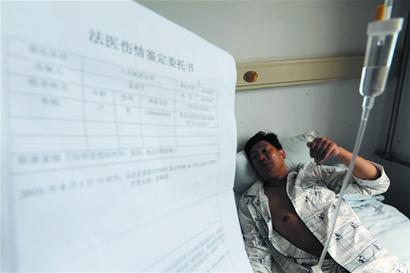 ????昨天下午,記者來(lái)到第九人民醫(yī)院外一科,李師傅正在病房里打吊瓶,他的左臉有明顯的青色瘀腫,他躺在病床上直說(shuō)頭痛?;貞浧鸨淮虻慕?jīng)過(guò),李師傅一臉的無(wú)奈。據(jù)李師傅介紹,前天下午3點(diǎn)左右,他接到通知觀音峽路26號(hào)有一位老人骨折,需要緊急送往醫(yī)院,他立刻駕車帶著醫(yī)護(hù)人員前去,醫(yī)護(hù)人員上樓后,他就在樓下等待。