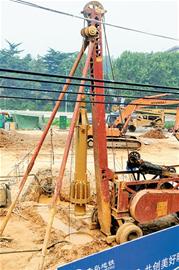 ????昨天,青島地鐵大學(xué)路施工段正在鉆探。目前,地鐵三號(hào)線基本實(shí)現(xiàn)全線圍擋,河西站開(kāi)始地下施工,其他站點(diǎn)有的在鉆探,有的在轉(zhuǎn)移各類管線。傅學(xué)軍 攝