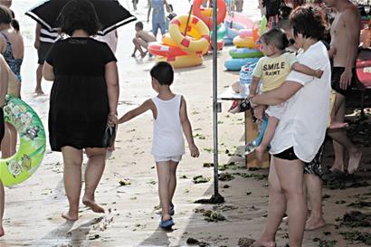 ????唐聞洲告訴記者,有的家長下海游泳、有的去買東西,等他們回來后,發(fā)現(xiàn)留在沙灘上的孩子不見了,雖然經(jīng)過反復(fù)廣播,孩子們都幸運地找了回來,但尋找的過程著實讓人捏了一把汗,他提醒廣大市民,家長到海邊游玩時,千萬要看好自己的孩子,不要讓孩子離開自己的視線,以免發(fā)生意外。 (錫復(fù)春 徐棟 曹俊龍 攝影報道)