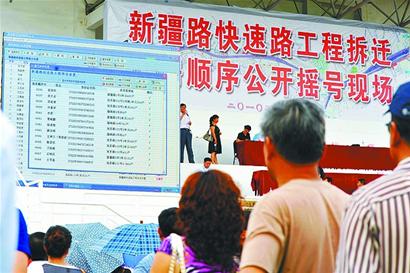 ????為何在此次新疆路高架橋拆遷項目中使用電腦搖號選房,市北區(qū)房地產(chǎn)開發(fā)管理局副局長江世珠告訴記者,在拆遷項目啟動前,工作人員對以往拆遷發(fā)號的特點進行了總結(jié),也調(diào)研了部分被拆遷的居民,在以往拆遷的項目中,居民提前得知拆遷時間后,為搶到前面的選房順序號,有時會連續(xù)排好幾天隊,而此次拆遷居民普遍希望拆遷發(fā)號有次序、相對公平、不受累。為此,相關(guān)部門考慮用在外地廉租房或經(jīng)適房中使用較多的電腦搖號選房方式,“夏天天氣很熱,如果按以往拆遷常用的排隊選號,居民尤其是老人會很受累,吃不消。 ”