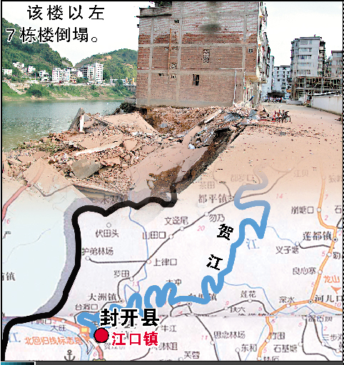 ????本報(bào)肇慶訊 (記者于敢勇 通訊員韋石明、李超松攝影報(bào)道)昨日下午4時(shí),位于封開(kāi)縣江口鎮(zhèn)舊城區(qū)東方二路賀江一橋至江口鎮(zhèn)實(shí)驗(yàn)廠原職工宿舍樓河岸路段發(fā)生滑坡地質(zhì)災(zāi)害,導(dǎo)致該區(qū)7棟居民樓房倒塌落入賀江中,所幸沒(méi)有造成人員傷亡。