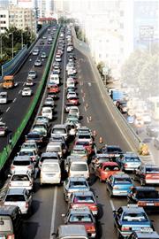 ????被臨時封閉的車道40余米長,錐形帽從橋頭開始,將這條車道封閉起來。“廣饒路上橋口處經(jīng)常堵,三車道變成兩車道,行駛在最外側(cè)車道的車肯定要往里拐,加之個別司機亂變道,交通秩序真是特別亂?!瘪{駛員李師傅說。記者隨即采訪了8名駕駛員,大家都認為從橋頭處封閉緩沖車道做法很好,這樣將擁堵狀況前移至上橋口,車輛駛到橋頭,便能根據(jù)擁堵情況選擇走橋上還是走橋下。