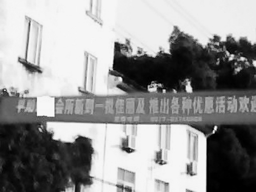 ????“旮旯人”發(fā)帖很簡(jiǎn)單:一張比較模糊的照片顯示,橫幅掛在一幢黃色房子前面,也就大致能看出,上面寫著“平陽XX(照片處理過,遮去了名字)會(huì)所新到一批佳麗及推出各種優(yōu)惠活動(dòng)歡迎……”等字樣。