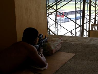菲律賓警方戒備用槍瞄向被挾持的旅游車