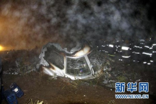 這是8月25日凌晨拍攝的失事飛機(jī)殘骸。 新華社發(fā)(李廣福 攝)