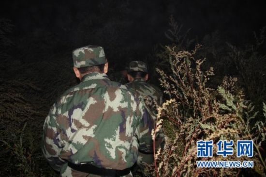8月25日凌晨,伊春邊防支隊(duì)官兵在飛機(jī)失事現(xiàn)場(chǎng)林中展開(kāi)拉網(wǎng)式搜救,尋找幸存者。新華社發(fā)(李廣福 攝)