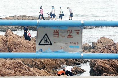 ????■早報記者昨從團島走到五四廣場只在岸邊找到兩個救生圈 ■管理部門:不解決被盜問題就沒辦法設(shè)置救生設(shè)施 ■市民建議:在公廁里給救生圈安個家