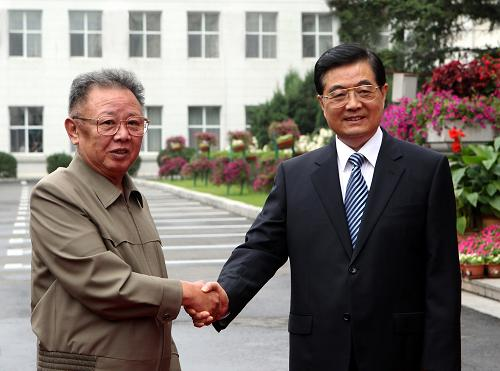 8月27日,中共中央總書(shū)記、國(guó)家主席胡錦濤在吉林省長(zhǎng)春市同朝鮮勞動(dòng)黨總書(shū)記、國(guó)防委員會(huì)委員長(zhǎng)金正日舉行會(huì)談。新華社記者鞠鵬攝