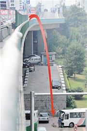 ????“這名中年男子是凌晨三四點(diǎn)鐘從橋上摔下來(lái)的,當(dāng)時(shí)停車(chē)場(chǎng)里有人看車(chē),也聽(tīng)到有重物落下的聲音,但因?yàn)閺臉蛏纤は碌哪凶诱玫袈湓诖蟀蛙?chē)和四五米高的墻壁縫隙中,值夜班的看車(chē)人根本就看不到?!笨窜?chē)人李師傅告訴記者,值夜班的看車(chē)人上午8時(shí)已經(jīng)下班回家休息,他來(lái)上班時(shí)聽(tīng)周?chē)用穹Q(chēng),早晨6時(shí)40分左右,大巴車(chē)司機(jī)趕到停車(chē)場(chǎng)提車(chē),把車(chē)開(kāi)出車(chē)位時(shí)從后視鏡里看到,一名滿臉鮮血的男子臉朝下趴在地上,頭上淌了一大攤鮮血,司機(jī)急忙停車(chē)撥打110報(bào)警,并聯(lián)系120急救人員趕來(lái)?!翱礃幼铀軅吭谶@已經(jīng)很長(zhǎng)時(shí)間了,頭上流出來(lái)的血都已經(jīng)凝固了,120急救人員趕到現(xiàn)場(chǎng)為他做心電圖時(shí),上面顯示已經(jīng)是一條直線。”目睹此事的另外一輛客車(chē)司機(jī)告訴記者。
