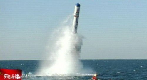 資料圖:中國“巨浪-2”潛射彈道導(dǎo)彈從水下發(fā)射升空。