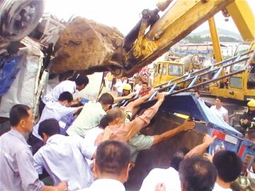????昨日下午2時許,在膠州灣海底隧道薛家島端出口處的三岔路口,一輛下坡的冰柜冷藏車和一輛上坡的農(nóng)用車發(fā)生相撞,兩輛車駕駛員均被困在車內(nèi)動彈不得。薛家島邊防派出所民警、119消防隊員、120急救人員立即趕到現(xiàn)場參與營救,經(jīng)過4個多小時的緊急救援將兩人成功救出。 ????兩車相撞疊羅漢 ????“在膠州灣海底隧道薛家島端出口處的三岔路口處,發(fā)生一起交通事故。”昨日下午2時2分,薛家島邊防派出所接到市民報警稱,一輛冷柜冷藏車與一輛農(nóng)用車相撞,兩車均側(cè)翻,冷藏車像疊羅漢一樣壓在農(nóng)用車上面,兩名駕駛員分別被困在各自駕駛室內(nèi),無法動彈,情況緊急。 ????薛家島邊防派出所民警、119消防隊員、120急救人員立即趕到現(xiàn)場。民警在現(xiàn)場看到,車號魯K05939的冰柜冷藏車將農(nóng)用三輪車車頭部位整個壓在車下,冷藏車箱體破裂,大量鮮鲅魚撒落在現(xiàn)場。 ????吊車挖掘機(jī)全上陣 ????“鑒于情況緊急,民警一方面做好前期急救工作,了解傷者情況,維護(hù)車禍現(xiàn)場周邊交通,另一方面進(jìn)行現(xiàn)場保護(hù)工作,疏導(dǎo)圍觀群眾,防止發(fā)生哄搶行為?!爆F(xiàn)場參與營救的薛家島派出所民警告訴記者,事發(fā)現(xiàn)場為附近幾個村莊的重要交通路口,事故發(fā)生后,造成了大量車輛擁堵,圍觀市民也很多,為了盡快將傷者營救出來,民警提前到路口疏導(dǎo)交通引導(dǎo)吊車、挖掘機(jī)等大型救援車輛進(jìn)入現(xiàn)場。 ????“由于冷藏車壓在農(nóng)用車上面,兩車車體部分扭曲在一起,吊車不敢使勁拽,只能一邊通過吊車向上牽引冷藏車,然后用挖掘機(jī)橫向平移農(nóng)用車,稍微閃出一個縫來,邊防民警、消防隊員和圍觀市民共20多人一起使勁將農(nóng)用車推出來?!爆F(xiàn)場目擊者王先生告訴記者。 ????救出兩名駕駛員 ????消防隊員從冷藏車的車頭進(jìn)入,利用液壓鉗和千斤頂很快將冷藏車的駕駛員救出,隨后被120急救人員送往醫(yī)院救治。該駕駛員意識清醒,還不停地和冷藏車車主說話交流?!稗r(nóng)用車被拉出來以后,駕駛室都扁了,為防止加重被困駕駛員的傷情,救援人員只能靠手一點(diǎn)點(diǎn)地將鐵皮扒開,經(jīng)過4個多小時的努力,農(nóng)用車駕駛員也被成功救了出來。”現(xiàn)場救援人員告訴記者,農(nóng)用車駕駛員意識清醒,腿部傷勢較重。 ????據(jù)冷藏車車主介紹,這輛冷藏車從威海文登拉了四五千斤的鮮鲅魚,來薛家島送貨,沒想到和農(nóng)用車發(fā)生碰撞,導(dǎo)致冷藏車箱體破裂,鮮鲅魚都撒了出來。他又立即調(diào)來一輛冷藏車,在邊防民警的幫助下及時將這些鮮鲅魚轉(zhuǎn)運(yùn),避免了更多的經(jīng)濟(jì)損失。目前事故原因在進(jìn)一步處理中。劉海龍 萬波 攝影報道 |
