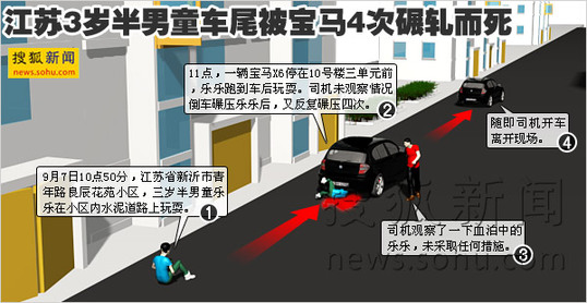 ????昨日晚7時(shí)許,新沂市委、市政府召開新聞發(fā)布會(huì),公開向新聞媒體和廣大市民通報(bào)“9.7”案件偵查進(jìn)展情況。通報(bào)稱,9月7日上午11時(shí)許,在新沂市良辰花苑小區(qū)院內(nèi),一輛牌號(hào)為蘇CLH×××的寶馬X6小型越野汽車將居住在該小區(qū)的一3歲半男童碾軋致死。