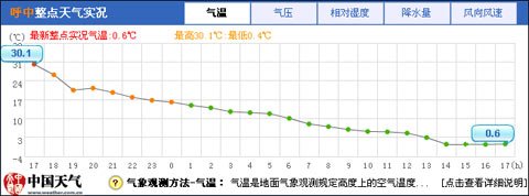 黑龍江呼中昨天17時氣溫比前一日同一時刻下降了29.5℃