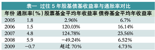 ????此外,相比其他低風(fēng)險(xiǎn)產(chǎn)品,債券基金也具有優(yōu)勢。在2005年到2009年間,所有債券基金的平均收益率介于5%至24%之間,平均年收益率約11%。同期,銀行理財(cái)產(chǎn)品年均收益率為4%,銀行1年期定期存款的平均收益率為2.7%,債券基金年均收益率是銀行理財(cái)產(chǎn)品收益率的近3倍,是1年期定期存款的4倍。