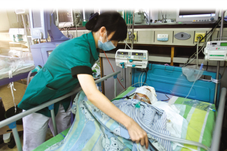 昏迷的小雅在接受治療 記者 張路橋 攝